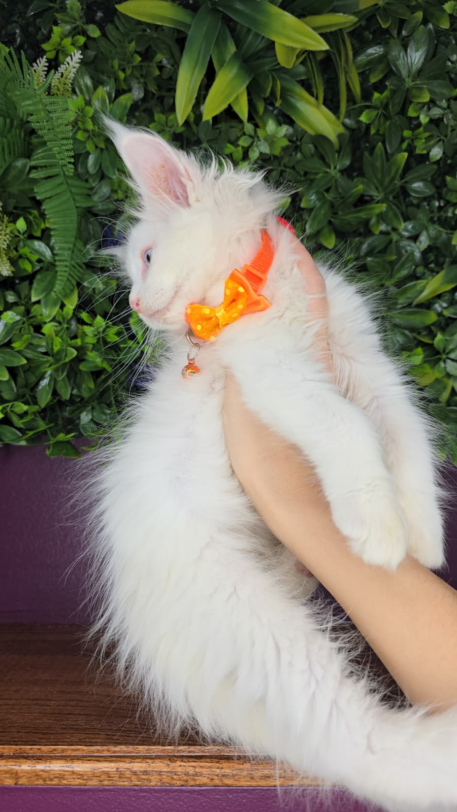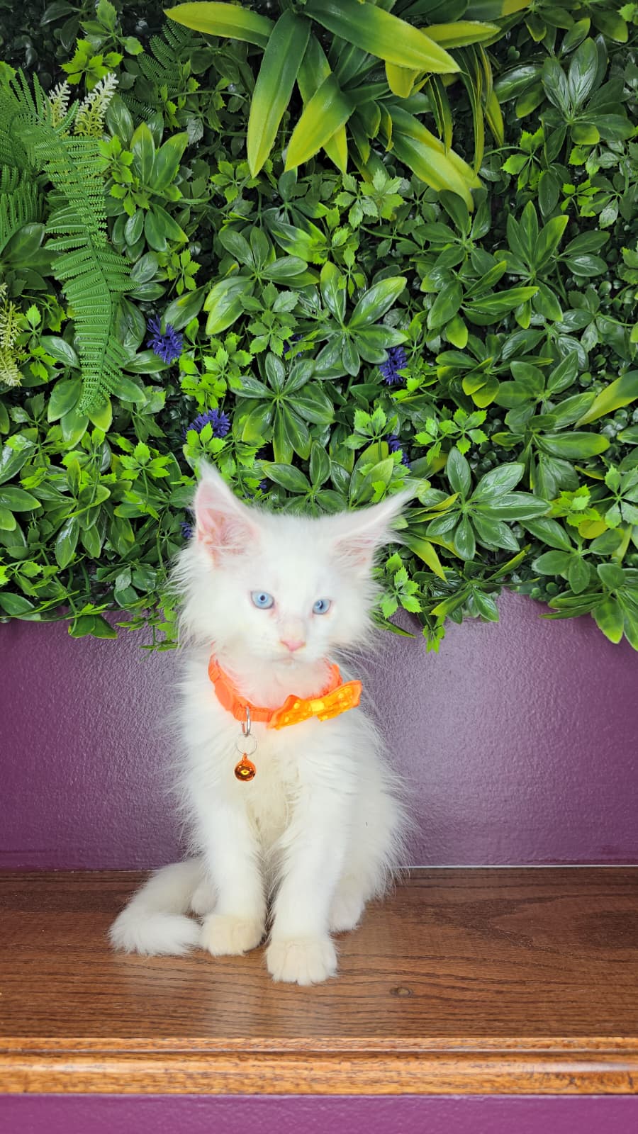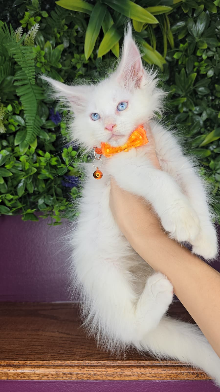 PersonalityThis white, blue-eyed boy is the largest kitten in the litter — a truly impressive baby with a gentle and charming personality. He’s incredibly sweet, very social, and always the first one to come running for cuddles or treats. Playful, affectionate, and absolutely adorable, he steals hearts the moment you meet him.